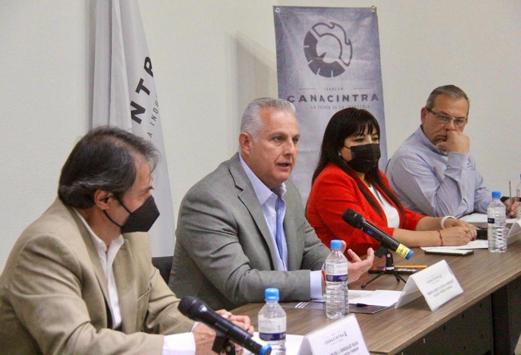El alcalde de Torreón Román Alberto Cepeda acudió esta tarde a la reunión de la Cámara Nacional de la Industria de la Transformación (CANACINTRA), donde compartió las estrategias de su gobierno en materia de desarrollo económico, inversiones y otras acciones.