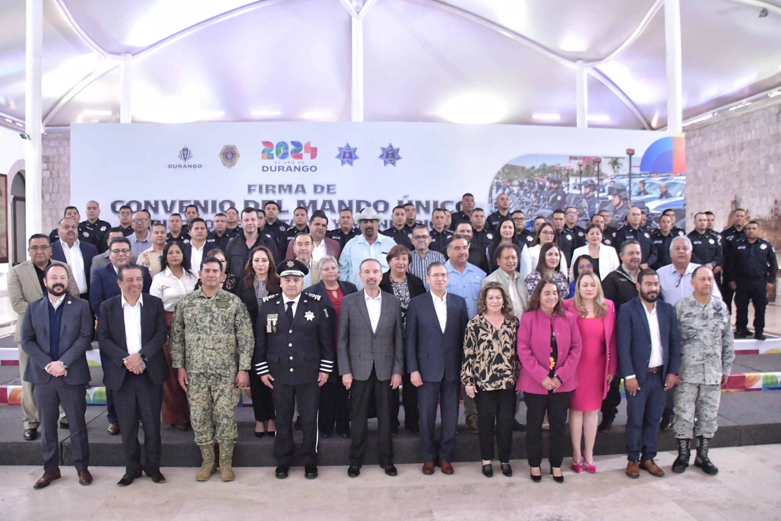 Lerdo, 28 de febrero de 2024.- Este miércoles, el Alcalde Homero Martínez Cabrera asistió a la ceremonia de firma del convenio de Mando Único entre el Gobierno del Estado y los Municipios, que se llevó a cabo en la Sala Rosario Revueltas del Centro Cultural y de Convenciones Bicentenario, en Durango capital.
