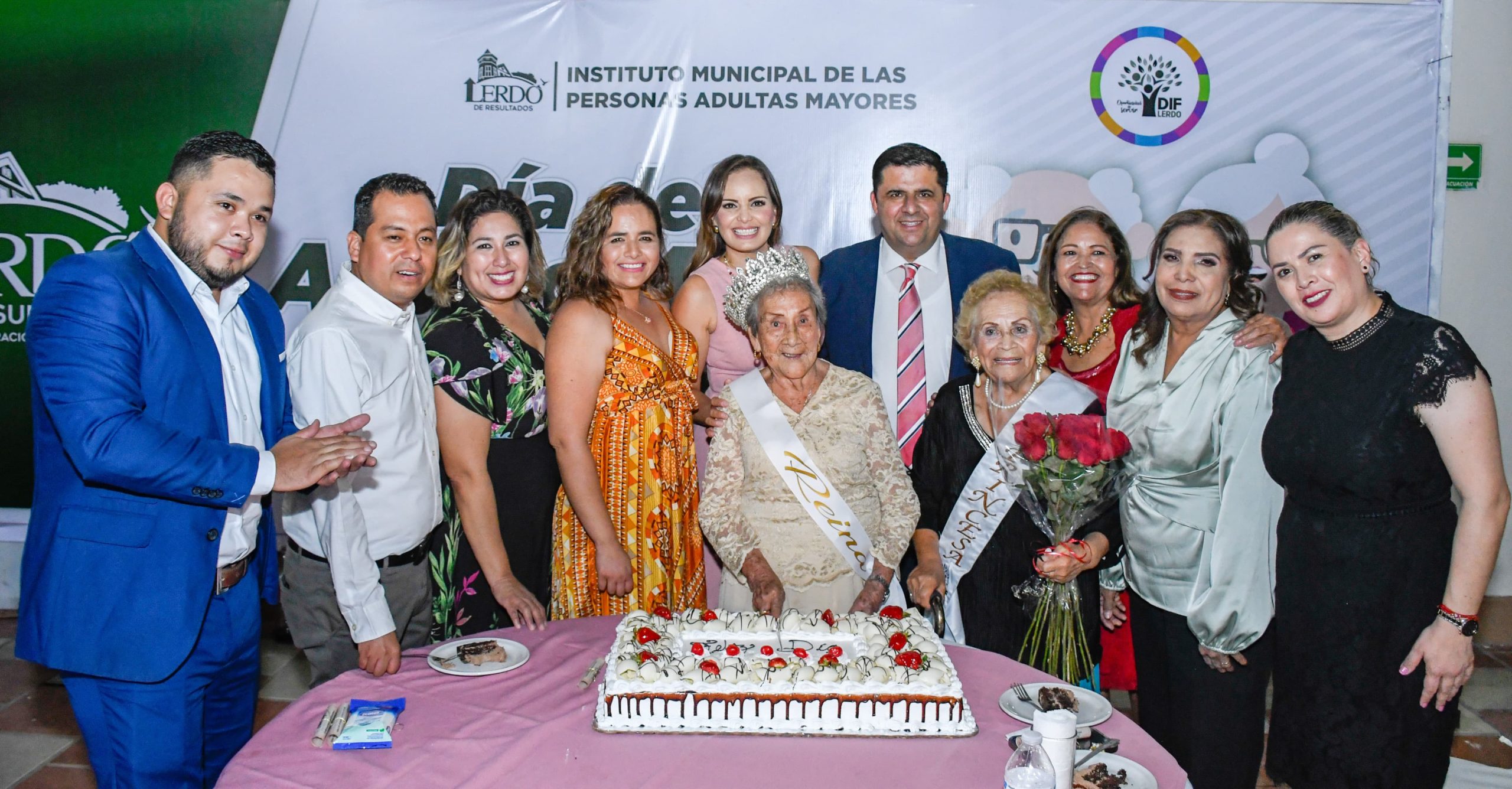 También estuvo presente la reina del Adulto Mayor, Doña Consuelo Correa Varela, las princesas, coronadas por el Sistema para el Desarrollo Integral de la Familia (DIF) Lerdo, y personas de la tercera edad que asisten a “Casa de Día”, espacio dedicado a la convivencia y fortalecimiento de habilidades de este sector poblacional.