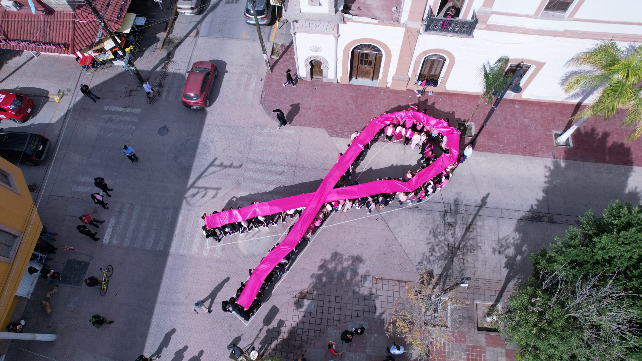 Además, en el Paseo Sarabia, frente al Reloj de la Presidencia Municipal se formó el lazo rosa en apoyo a esta lucha contra el cáncer de mama, donde se contó con la participación de autoridades municipales, maestros y alumnos del Colegio Lerdo Contemporáneo, Centro Universitario de Coahuila, grupo de zumba Sport Jump Laguna.