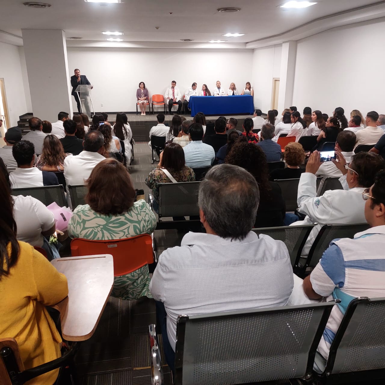 En una emotiva ceremonia, se realizó la clausura, la cual fue presidida por el jefe del Hospital Nuevo Gómez Palacio, Héctor Alejandro Olvera Martínez; el subdirector del Hospital Nuevo Gómez Palacio, Javier Cruz González; la secretaria académica de la Facultad de Ciencias de la Salud de la UJED; el director de la Facultad de Medicina de la UAD, Jesús Pámanes González; así como la coordinadora de Enseñanza de Médicos Internos de Pregrado, Martha Leticia Guerrero Medina.