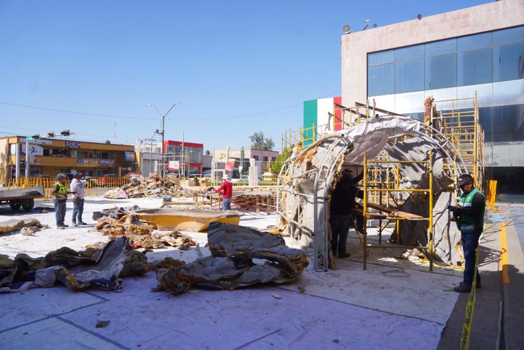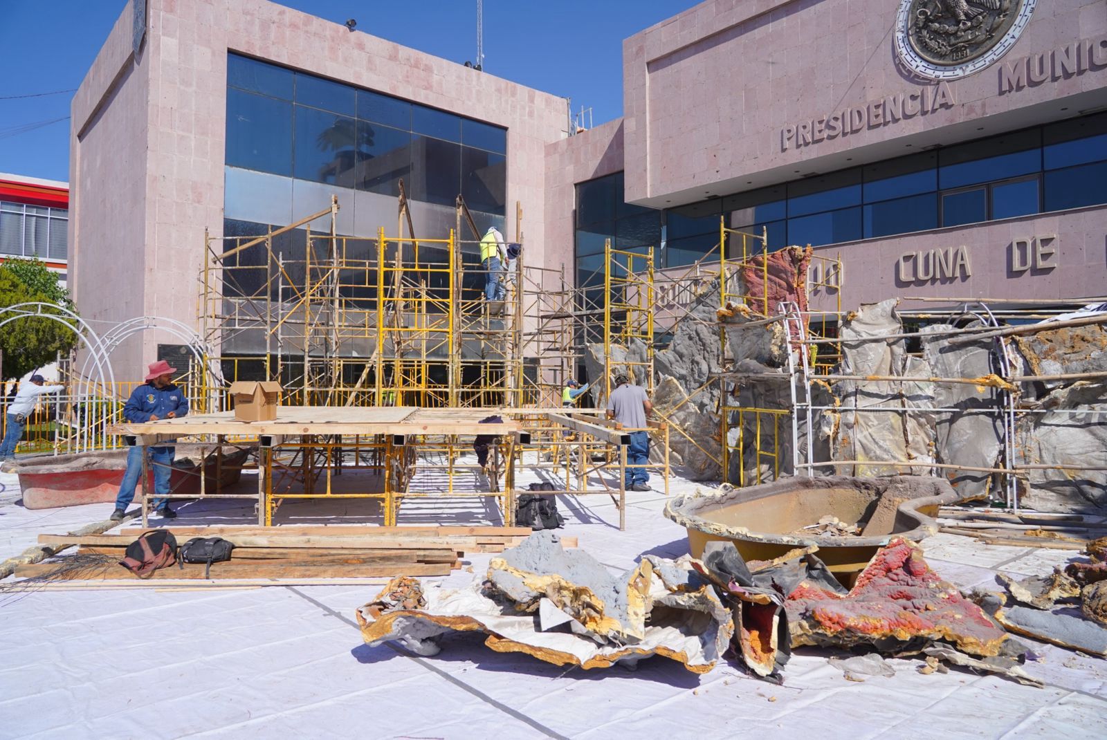 Comenzó la instalación del tradicional Nacimiento Monumental en la explanada de la Presidencia Municipal de Gómez Palacio