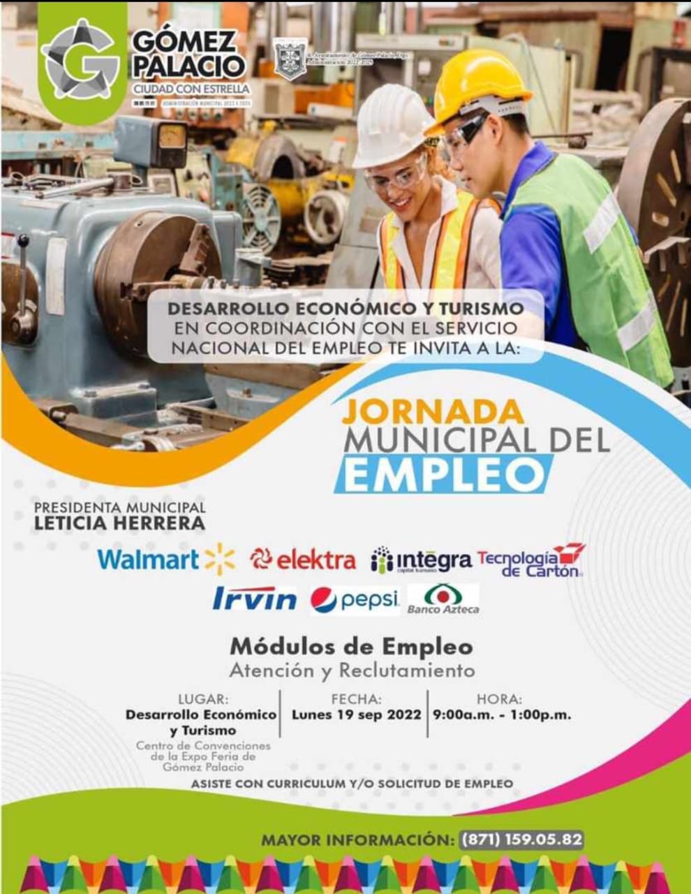 Reflejo del interés de la presidenta municipal, Leticia Herrera Ale, por impulsar la economía, se ofrecen todas las facilidades para la difusión de estas ofertas laborales que resultan en la posibilidad de empleo bienestar para los gomezpalatinos.