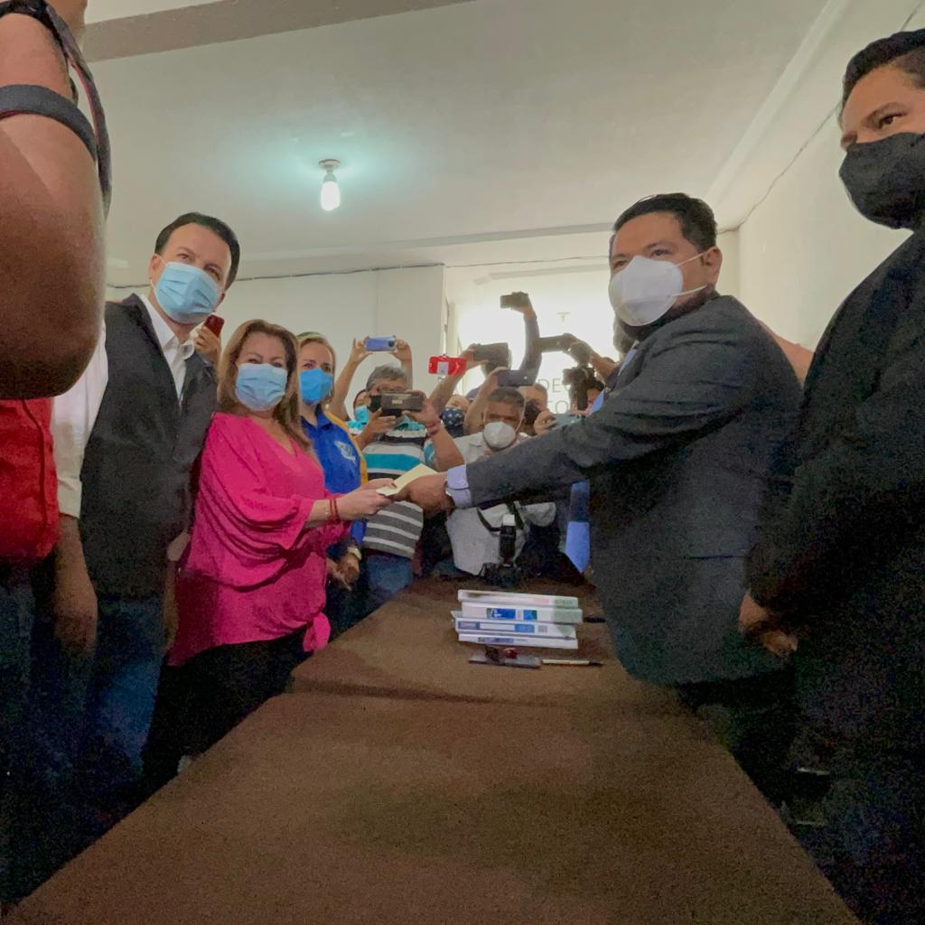 Al finalizar la entrega de documentación, Herrera Ale agradeció el acompañamiento de los representantes de los partidos PRI-PAN-PRD.