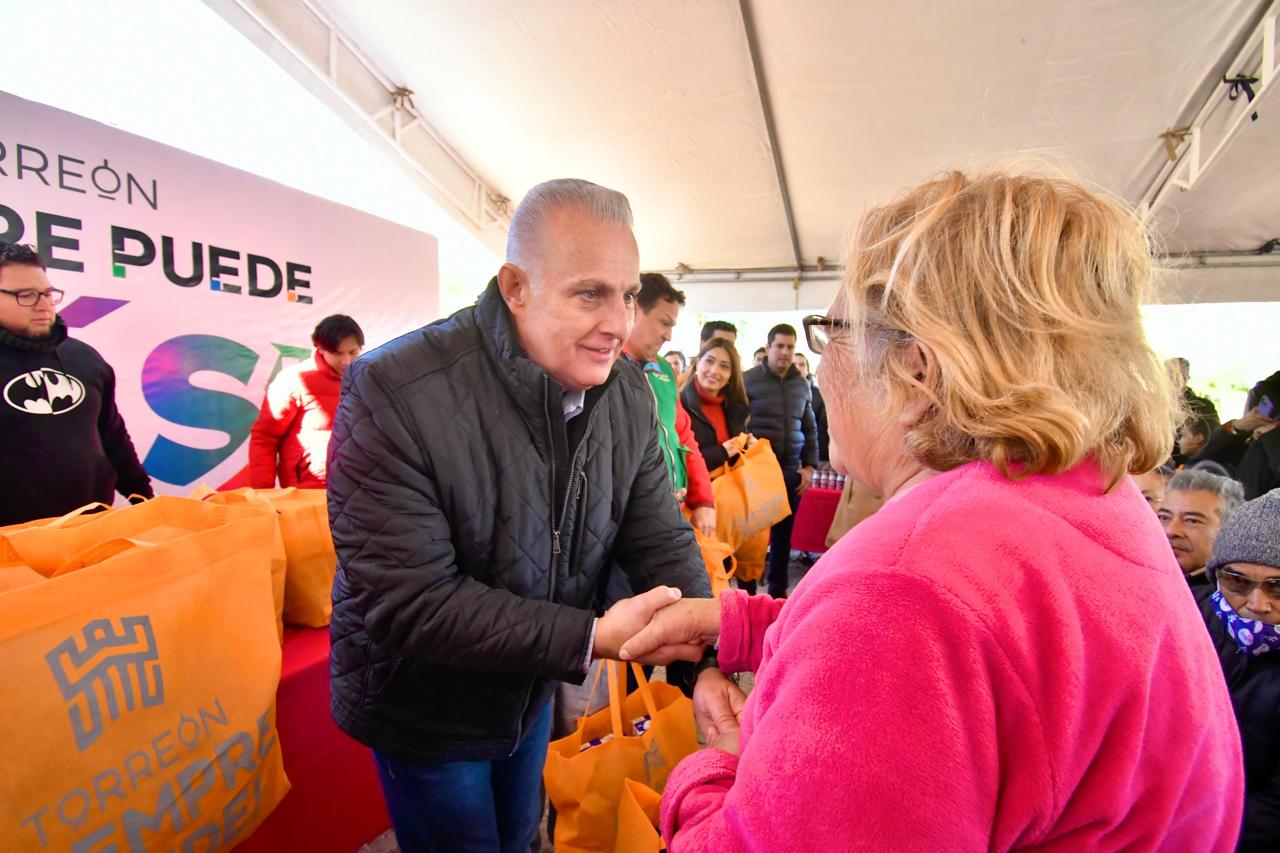 “Venimos a visitar a las familias de este sector, a compartir con los vecinos de las colonias Buenos Aires y Camilo Torres la rosca de reyes, y a entregarles kits para hacer frente a las bajas temperaturas que han impactado a Torreón, con apoyos de cobijas, leche, calcetines y guantes, entre otros”, informó el Alcalde.
