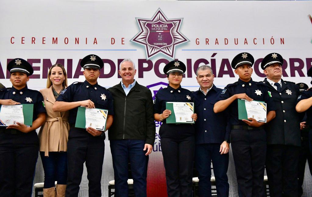 “Es para mí un orgullo acompañarlos en su graduación, el día de hoy se convierten en elementos de seguridad pública y de proximidad social; porten su uniforme con mucho orgullo ya que se convierten en uno de los servidores públicos primordiales que están a cargo de vigilar el desarrollo, la tranquilidad y la seguridad de los torreonenses”, expresó.