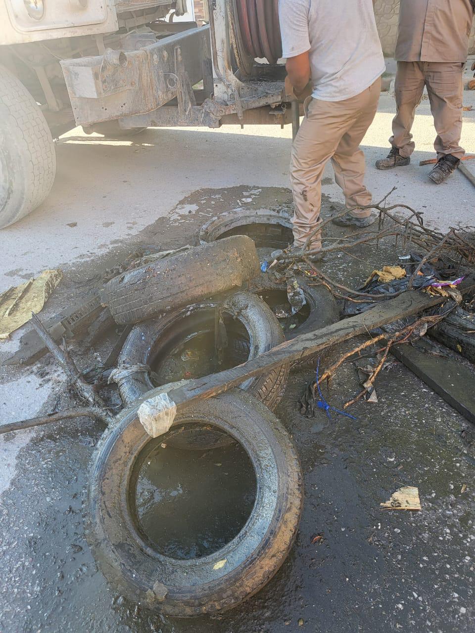 Durante los trabajos de desazolve en la colonia Rincón La Merced, personal del SIMAS Torreón encontró la red de drenaje saturada de todo tipo de desechos, incluyendo llantas de vehículos, lo cual impide el flujo continuo de las aguas residuales, informó Eduardo Terrazas Ramos, encargado del despacho de la paramunicipal.